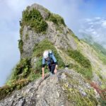 大日岳を超えるまでは鎖場の乱高下&岩場のトラバースの連続 岩はほぼ乾いているが、所々人が通り岩が丸まってツルッと滑る。しかし、しっかりとした鎖が張ってあって安心。