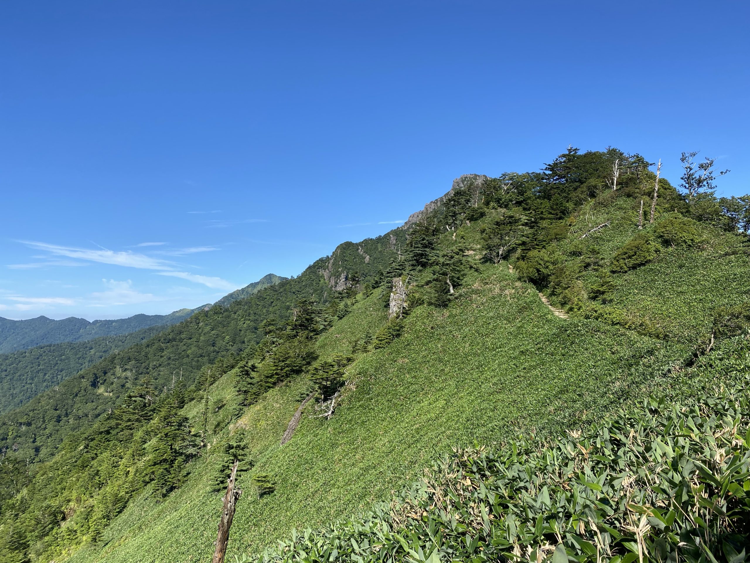 当初の計画では8/17から8/19の2泊3日で双六岳〜雲ノ平を回ってこようと計画していましたが、どうも天気図は荒れ模様。ちっとも良くなりそうな気配無し_(;ω;`」_)_ 8/17は早々に諦め8/18から・・・これも2日前に諦め、8/19にようやく前線が退きそうなので8/19から1泊2日でなんとか双六岳にでもと出発。 前日8/18の21時に新穂高温泉の登山口駐車場へ着くように出発。平湯温泉のひらゆの森(¥600)でひとっ風呂浴びて向かうと、インフォメーションに一番近い無料駐車場はもう満車(•́ε•̀;ก)💦、仕方なく彷徨った挙句、鍋平高原に近い方の無料駐車場P8に止めることができ、遅い夕飯を採り23時頃に車中泊 1日目 晴天。4時過ぎに起床し、準備して5時過ぎにスタート。インフォメーションのある登山口まで徒歩30分ほど。 登山口に着く前にリタイヤするんじゃないか?って思うようなぬかるんだ急斜面の山道を歩き、6時前にようやくスタート。帰りはロープウェイで鍋平まで行こうと誓う・・・誰にw わさび平小屋までの林道歩き、意外に長い。途中、笠ヶ岳登山口を通過、いつかまた行ってみよう。 朝からすでに暑く、わさび平小屋の冷やしたキュウリとトマトに誘惑されるも、我慢我慢。 小池新道登山口からじりじりと登り。 ゴロゴロ石地帯は綺麗に階段組まれていて歩きやすく感謝感謝。熊出没情報もあるので、ビビりながらも「北の国から」の吾郎さんを思い出しながら黙々と進む。 秩父沢出合の川で顔を洗ってリフレッシュ。いっそ浸かりたいくらい。 ここからシシウドヶ原まで徐々に等高線が詰まってくるが、時折見える穂高連峰の景色が綺麗で、ついついペースアップ。すれ違ったおばさんに、「今日の鏡平は格別よ♡」と言われ、休憩もそこそこに一気に鏡平の鏡池まで。確かに水面に映る木々の向こうに見える槍や大キレット、穂高の景色はいつまでも見てられる。 鏡平山荘では、噂のかき氷!山の中で氷を頂けるなんて夢見たいだけど現実。下界で食べる氷とは違うのか?何か混ぜてる?ってほど美味しく感じました。 身体も冷やしたので、気持ちを新たに再出発。 休憩後の坂道がボディーブローのようにキツく感じ、じわじわと体力消耗。弓折乗越までがめちゃくちゃ長く、荷物も重くなった気がする。景色は最高に良い場所なのに地味に疲れた。 乗越からはいよいよ稜線歩き。多少のアップダウンもあるけど、周りの山並みを見て「凄いな〜!綺麗なぁ〜!」の連呼。独り言をブツブツ言ってたのではなく、もちろん心の中でね。 やがてコルに立つ双六小屋の赤い屋根と双六池が見える。 すぐにテント場の受付(¥2000/張)を済ませて、軽量化のために買った初おろしニーモのタニを組み立てる。家の中で予行演習もしてたので結構短時間で設置完了。 小屋でビール(¥600)を買ってまずはひとり乾杯🍺 寝転がってしまうと動く気も失せて、1日目はビールを飲んで、味の薄かったパスタを食べて終了。 夜は20時過ぎまで天気が良く星空撮影。もう少し待てば真上に天の川がくるので、それまで寒いのでテントで休憩。21時過ぎにいよいよと思い外に出ると、分厚い雲Σ(・□・;)その後晴れることもなく22時頃に就寝、チーーーン 2日目 周りのテントが2時過ぎに五月蝿くなったので、もう寝れない。仕方なく3時に準備を始める。 外はどんより曇り空。 朝ごはんは、お餅を入れたお汁粉。これ、絶対間違えのない美味しさ。 4時前に荷物をデポしたまま双六岳に向けて出発。 わずかな期待で日の出を見に・・・ 双六岳の滑走路に到着し、日の出を期待したが、ぼんやり明るいだけで雲に覆われる。 曇ってはいたが、双六岳の滑走路からの槍、これが双六岳へ行こうと決めた見たかった景色♡ 同じような写真をいっぱい撮りまくるw。 山頂に着いた頃には、槍様の先っちょは雲の中。 ギリギリ間に合った感じ。 周りを見渡すと、薬師岳や黒部五郎岳。三俣蓮華岳まで行く計画にしていたが、西の山にレンズ雲もあり、天気が大きく崩れると予想して早めに下山することに変更。できれば昼には下山したい。 テント場まで行くまでにポツポツ☔️。「テントの撤収雨の中嫌だなぁ〜」と思っていたら、テント場についた頃には一時的に止みました。ラッキー!やっぱ日頃の行いかな? テントを撤収し足早に下山。昨日見ていた槍や穂高連峰の全容は全く見えず、山頂は雲の中。景色もないので、雨を避けて早期下山でさっさと先に進み、鏡平山荘で休憩しただけで一気に下山。 鏡平を過ぎた頃から少しずつ雨が強くなり、秩父沢を過ぎてからはレインウエア無しでは無理な状態。小池新道登山口に着く頃には土砂降りで、レインウエアも滲み滲み。これから登っていく登山の方と何人もすれ違う。みんな低体温大丈夫かな?って心配。 新穂高のインフォメーションについた頃には、手の指は雨でジジィのようにシワシワにふやけ、靴の中も雨でガポガポ言ってる始末。日頃の行いのお陰はなかった。 誓いのごとくロープウェイに乗って楽